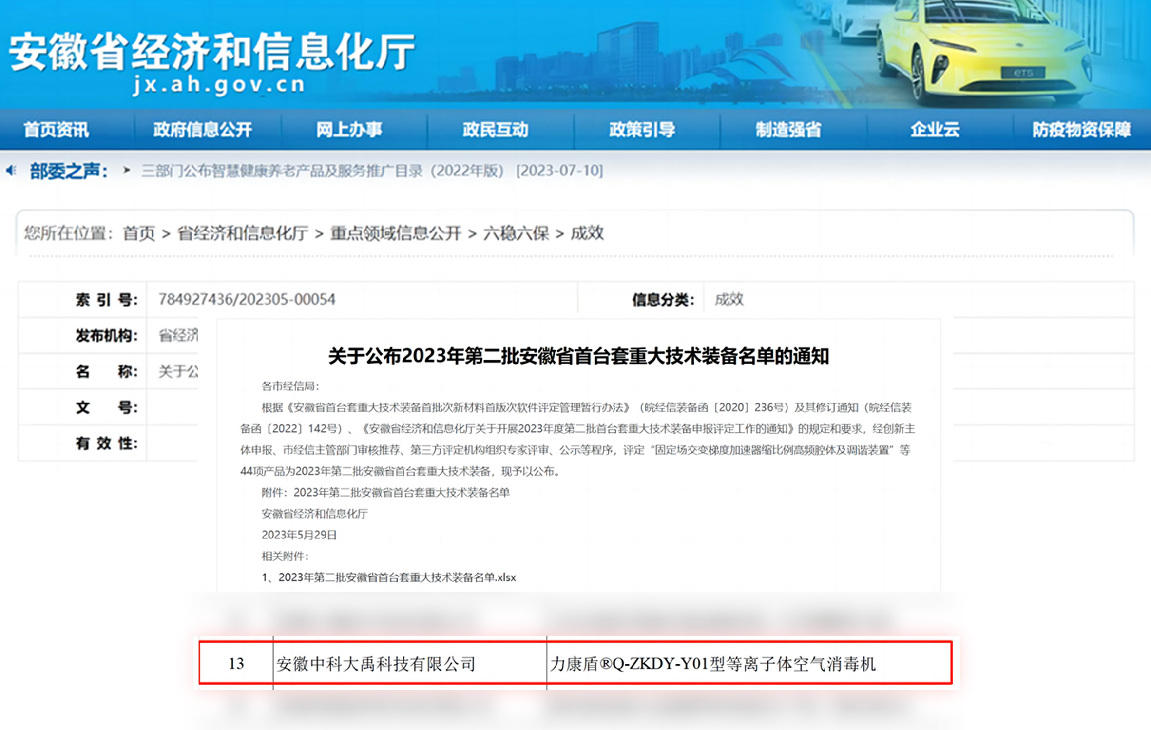 • 力康盾?ZKDY-G-180-P型等離子體空氣消毒機入選2024年度第三批安徽省首臺套重大技術裝備,評定等級:國內先進